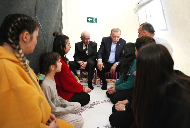 Defne Sahra Hastanesi’ni ziyaret eden Erdoğan, hastanede bulunan vatandaşlara moral ziyaretinde bulundu. Erdoğan ve Bahçeli daha sonra Antakya ilçesinde inşa edilen Katar Türkiye Kardeşlik Konteyner Kenti’ne geçti. Depremzedeleri ziyaret eden Cumhurbaşkanı Erdoğan ve Bahçeli, problemlerini dinledi.